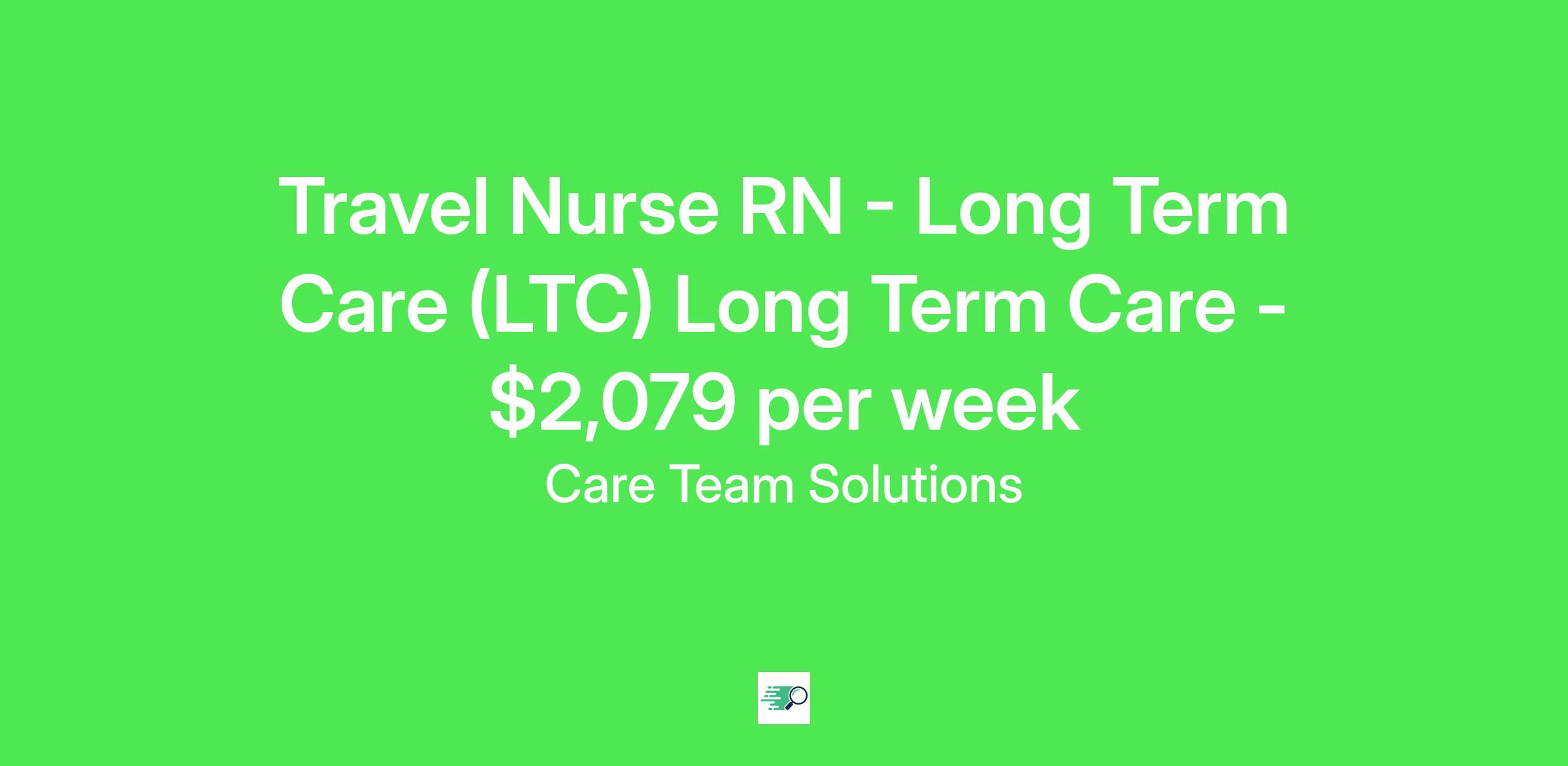 Care Team Solutions Job ID . Pay package is based on 12 hour shifts and 36 hours per week (subject to confirmation) with tax-free stipend amount to be determined. Posted job title: Registered Nurse-Long Term Care