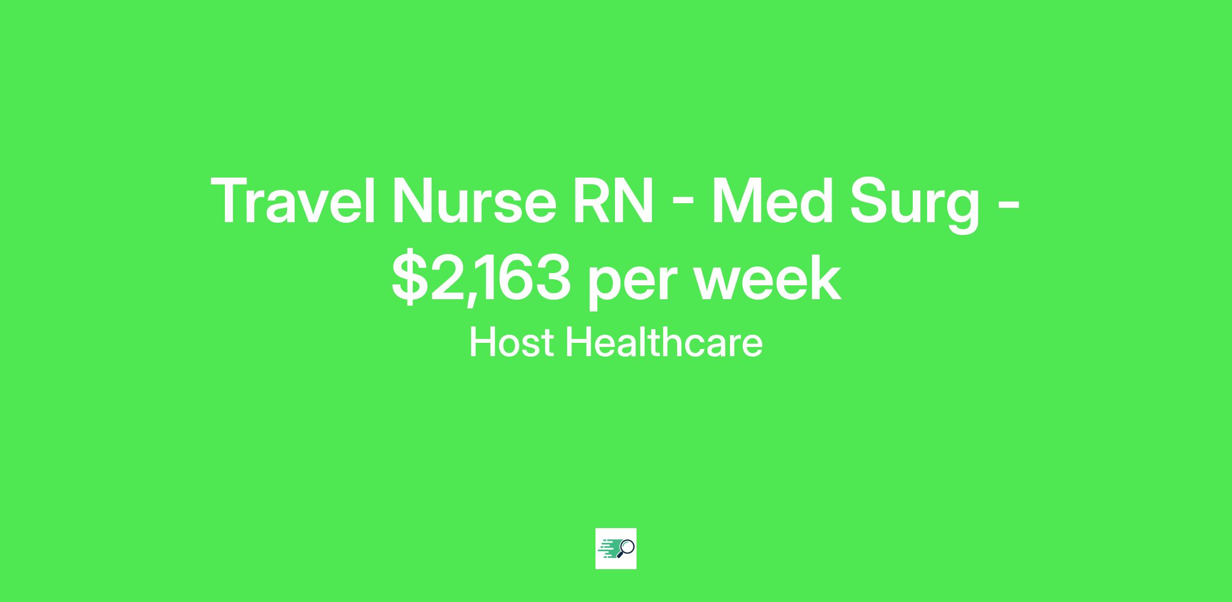 Job Description & RequirementsHost Healthcare Job ID . Pay package is based on 12 hour shifts and 36 hours per week (subject to confirmation) with tax-free stipend amount to be determined. Posted job title: RN - Medical-Surgical