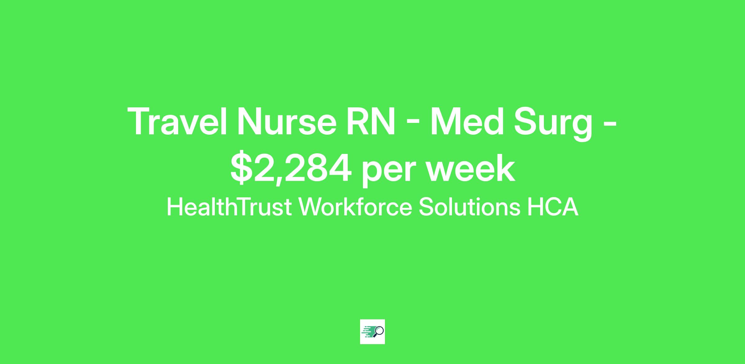 Job Description & RequirementsAt HealthTrust Workforce Solutions, healthcare is not just about the four walls of a facility but about the people who provide and receive care. Our focus is on empowering healthcare professionals to deliver exceptional patient experiences by providing them with the necessary skills, tools, and support. We partner with healthcare facilities nationwide to ensure that the right professionals are in the right roles. We prioritize our clinicians by giving them a voice and access to opportunities to fulfill their mission of improving lives by providing quality patient care.