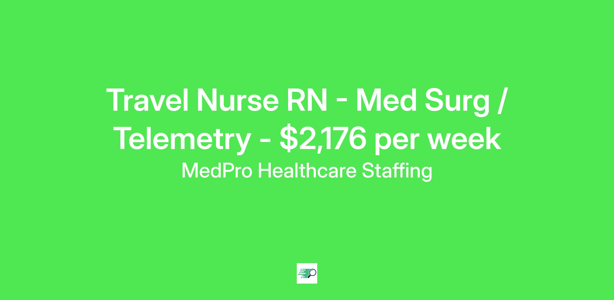 MedPro Job ID . Pay package is based on 12 hour shifts and 36 hours per week (subject to confirmation) with tax-free stipend amount to be determined. Posted job title: Med-Surg/Telemetry Registered Nurse Nursing: Med Surg/Tele.