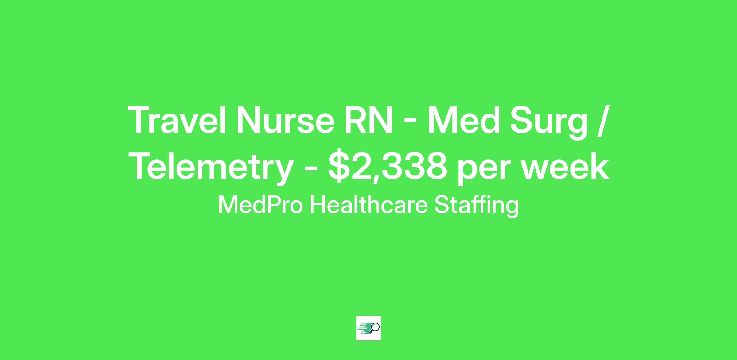 MedPro Job ID . Pay package is based on 12 hour shifts and 36 hours per week (subject to confirmation) with tax-free stipend amount to be determined. Posted job title: Med-Surg/Telemetry Registered Nurse Nursing: Med Surg/Tele.