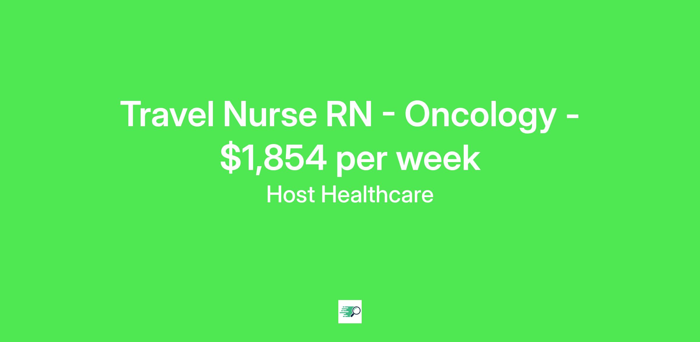 Job Description & RequirementsHost Healthcare Job ID . Pay package is based on 12 hour shifts and 36 hours per week (subject to confirmation) with tax-free stipend amount to be determined. Posted job title: RN - Oncology