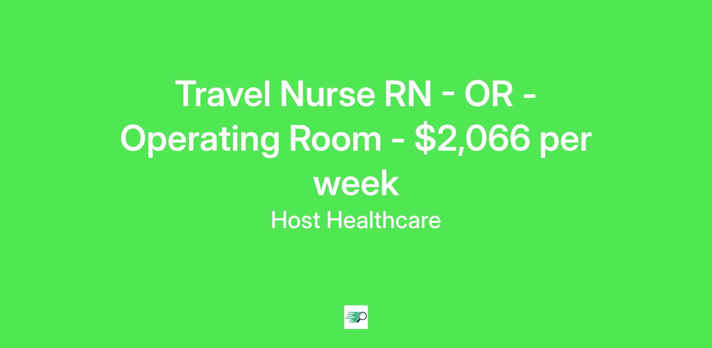 Job Description & RequirementsHost Healthcare Job ID . Pay package is based on 12 hour shifts and 36 hours per week (subject to confirmation) with tax-free stipend amount to be determined. Posted job title: RN - Operating Room