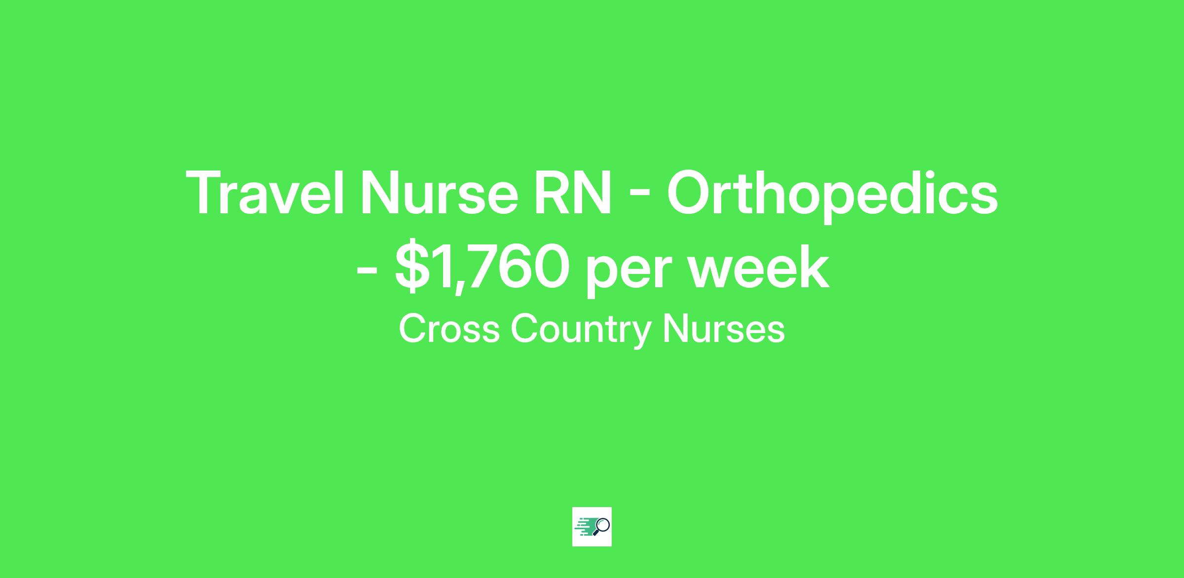 Minimum RequirementsCross Country Job ID . Pay package is based on 12 hour shifts and 36 hours per week (subject to confirmation) with tax-free stipend amount to be determined. Posted job title: Registered Nurse / Medical Surgical Orthopedic Floor
