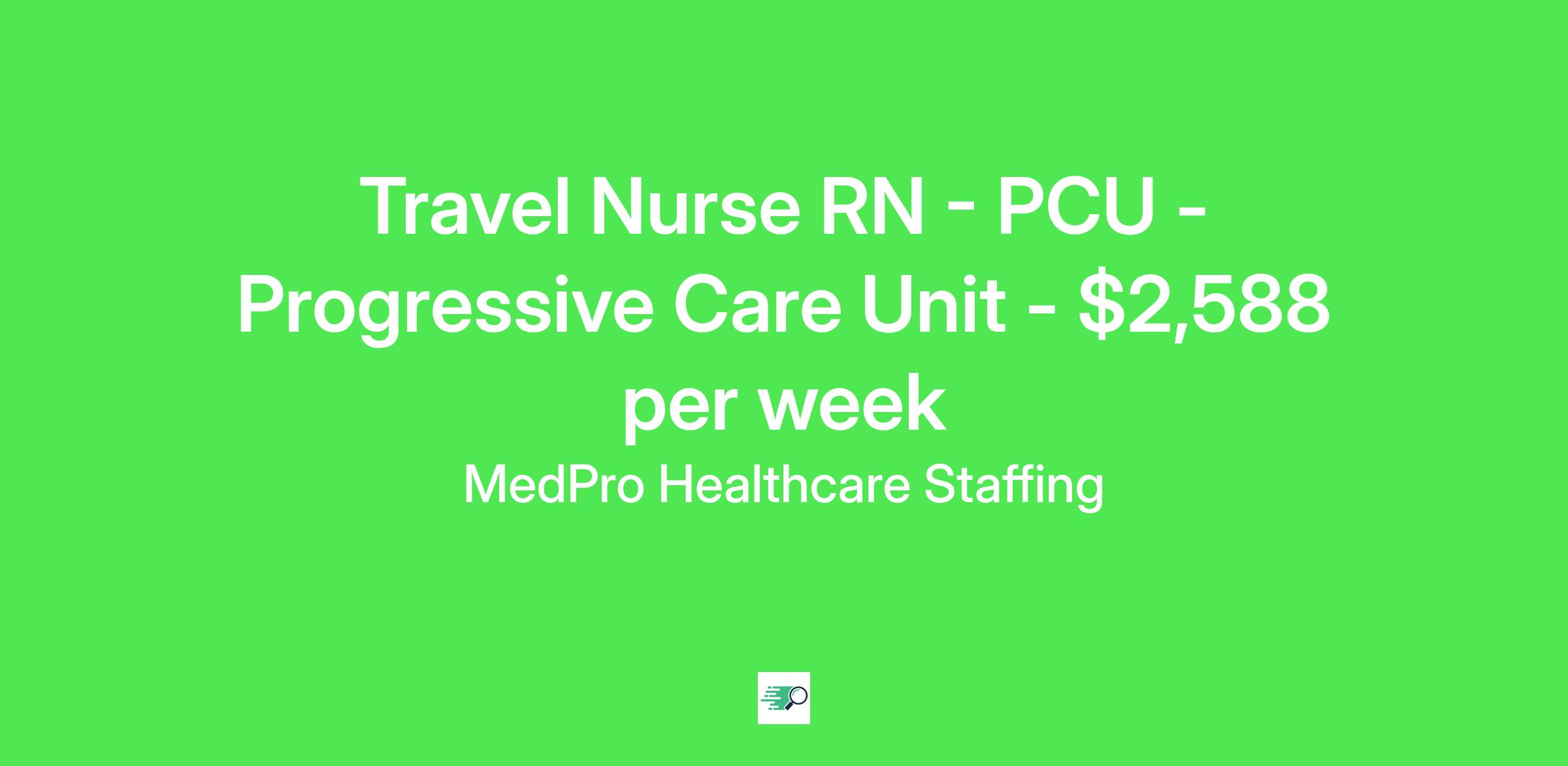 MedPro Job ID . Pay package is based on 12 hour shifts and 36 hours per week (subject to confirmation) with tax-free stipend amount to be determined. Posted job title: PCU/Step-down Nurse Nursing: PCU.