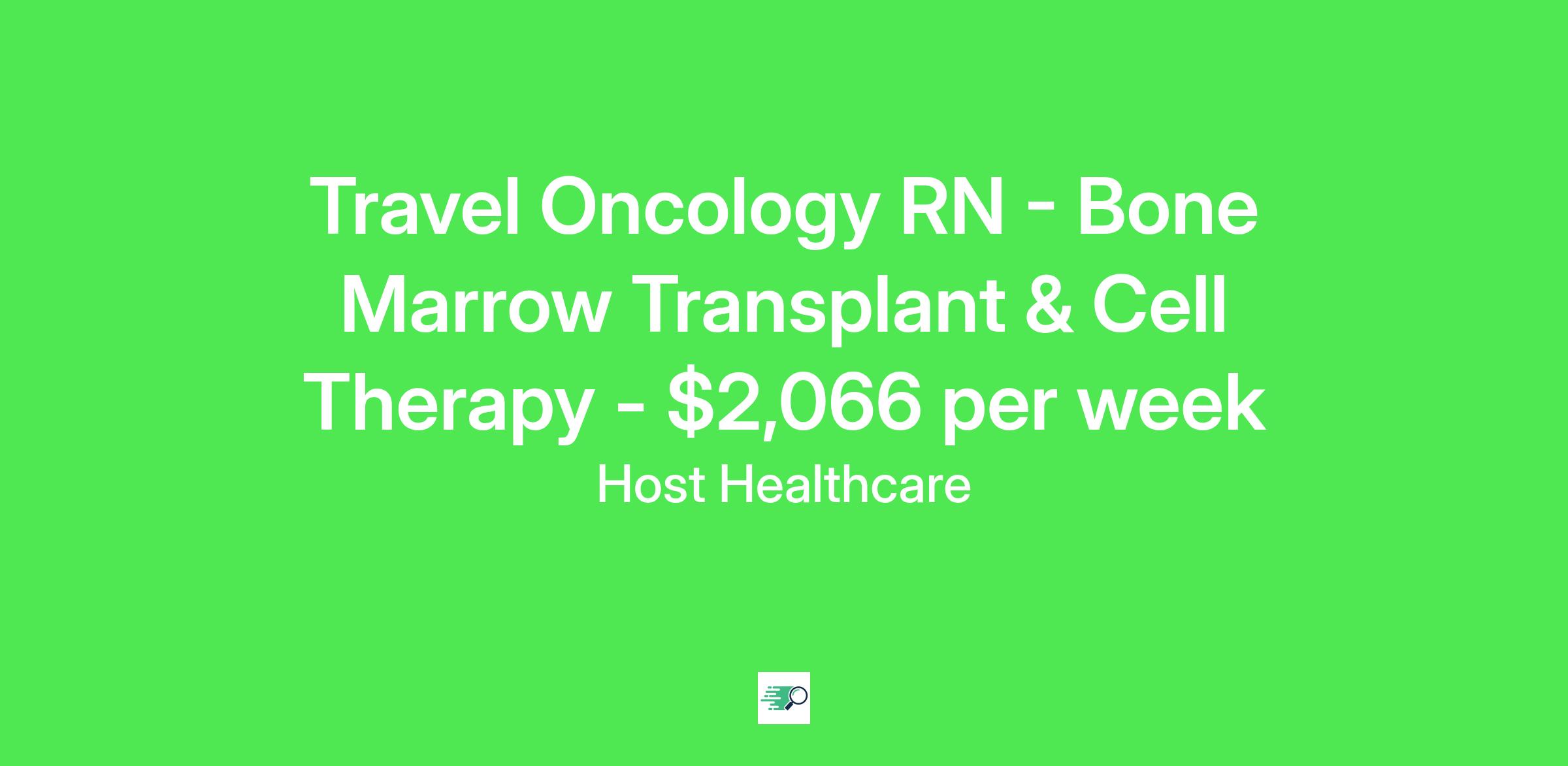 Job Description & RequirementsHost Healthcare Job ID . Pay package is based on 12 hour shifts and 36 hours per week (subject to confirmation) with tax-free stipend amount to be determined. Posted job title: RN - Oncology