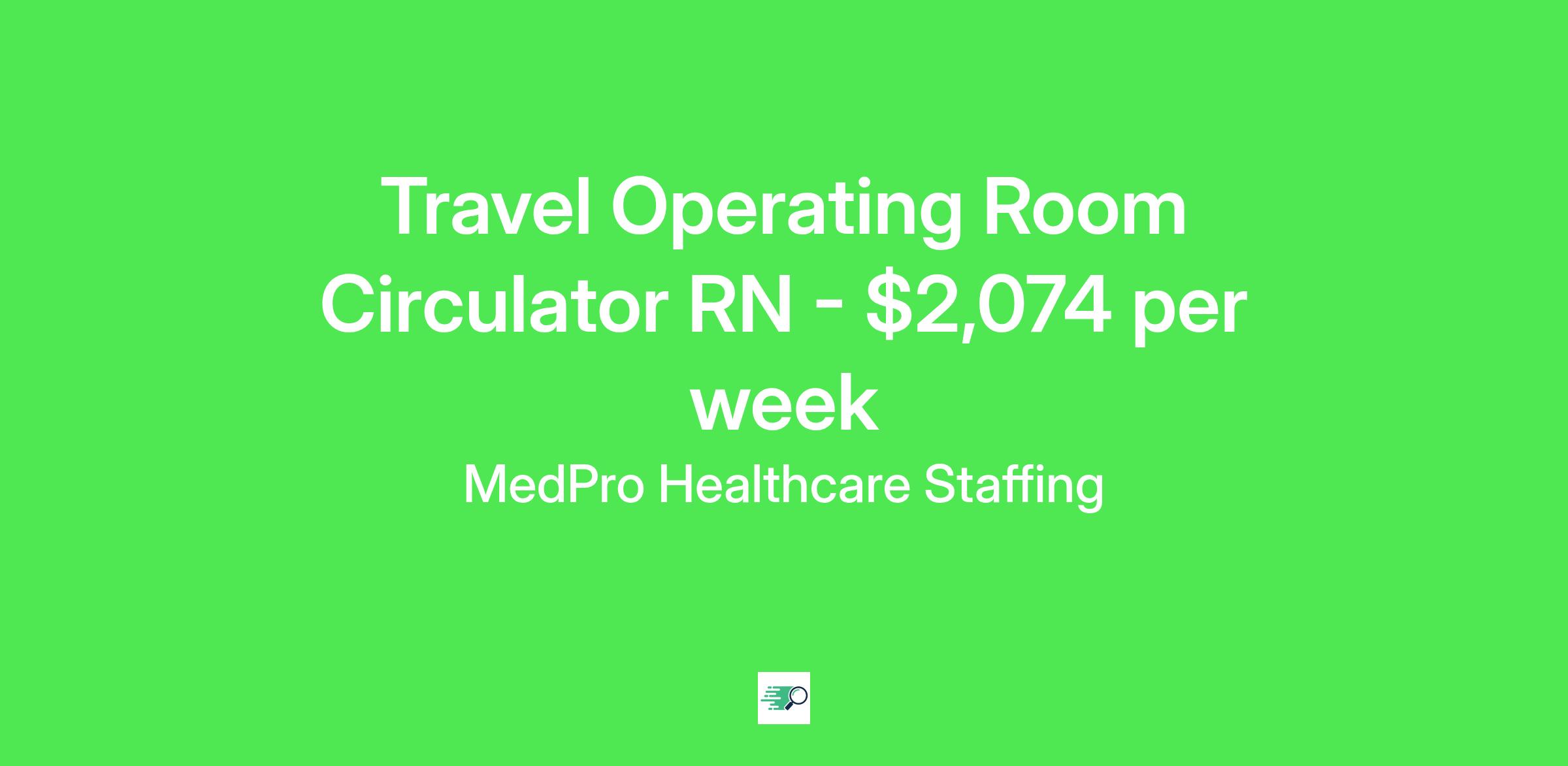MedPro Job ID . Pay package is based on 8 hour shifts and 40 hours per week (subject to confirmation) with tax-free stipend amount to be determined. Posted job title: Operating Room Registered Nurse Nursing: Operating Room.