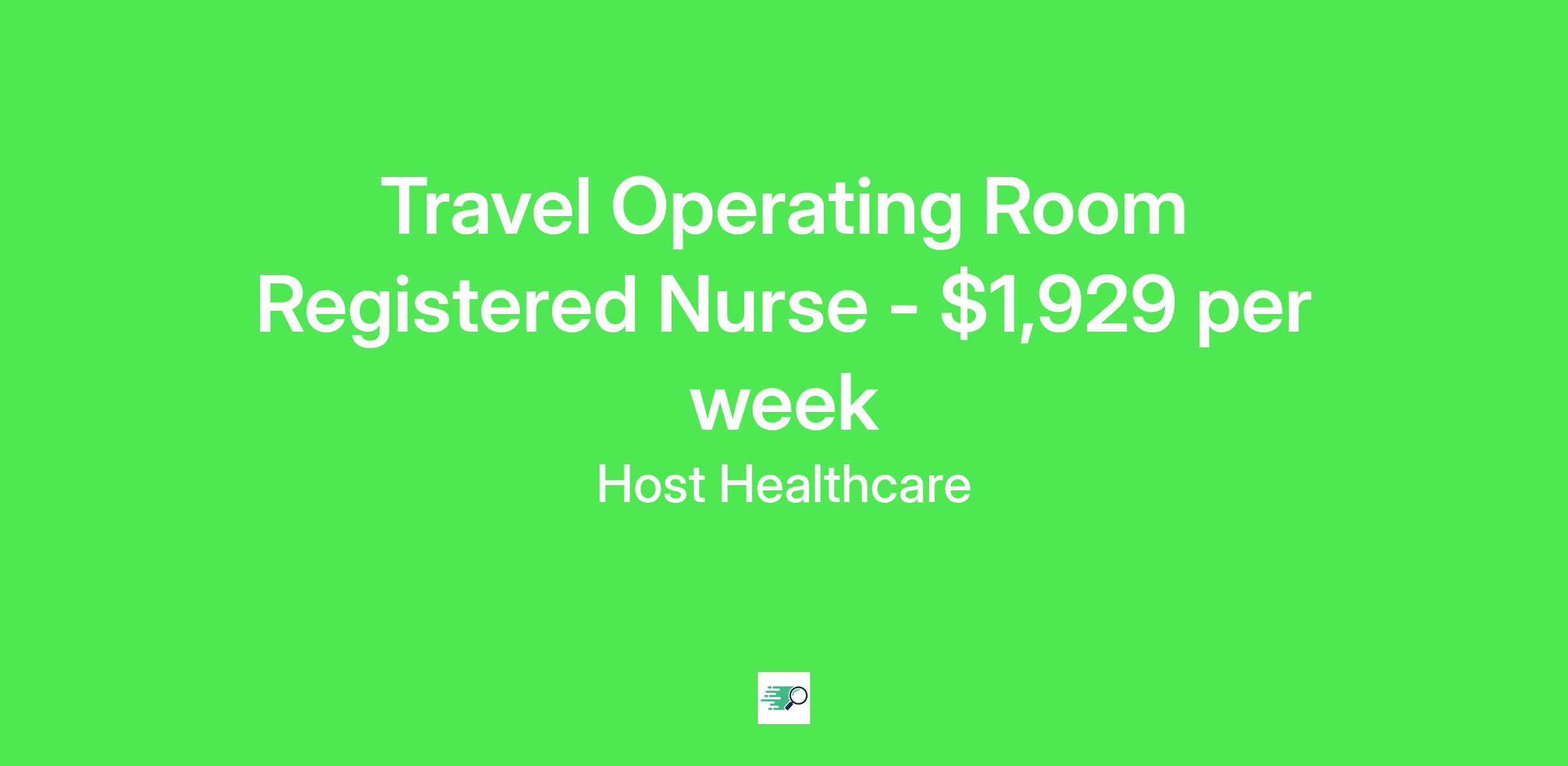 Job Description & RequirementsHost Healthcare Job ID . Pay package is based on 12 hour shifts and 36 hours per week (subject to confirmation) with tax-free stipend amount to be determined. Posted job title: RN - Operating Room