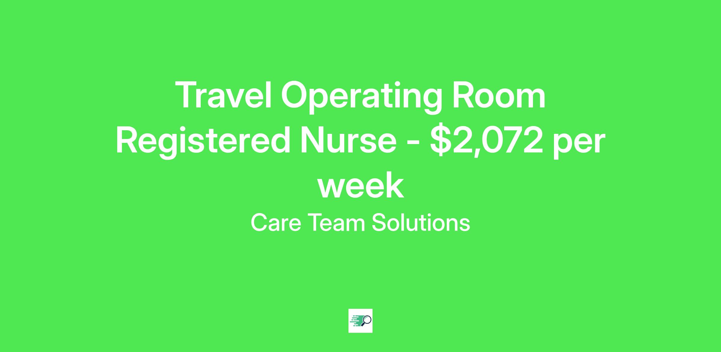 Care Team Solutions Job ID . Pay package is based on 12 hour shifts and 36 hours per week (subject to confirmation) with tax-free stipend amount to be determined. Posted job title: Operating Room Registered Nurse
