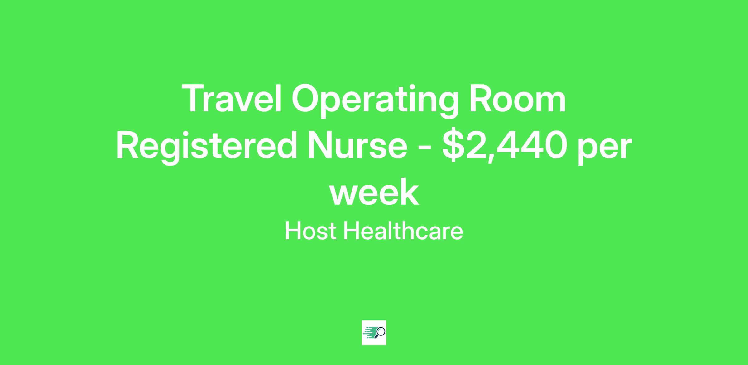 Job Description & RequirementsHost Healthcare Job ID . Pay package is based on 8 hour shifts and 40 hours per week (subject to confirmation) with tax-free stipend amount to be determined. Posted job title: RN - Operating Room