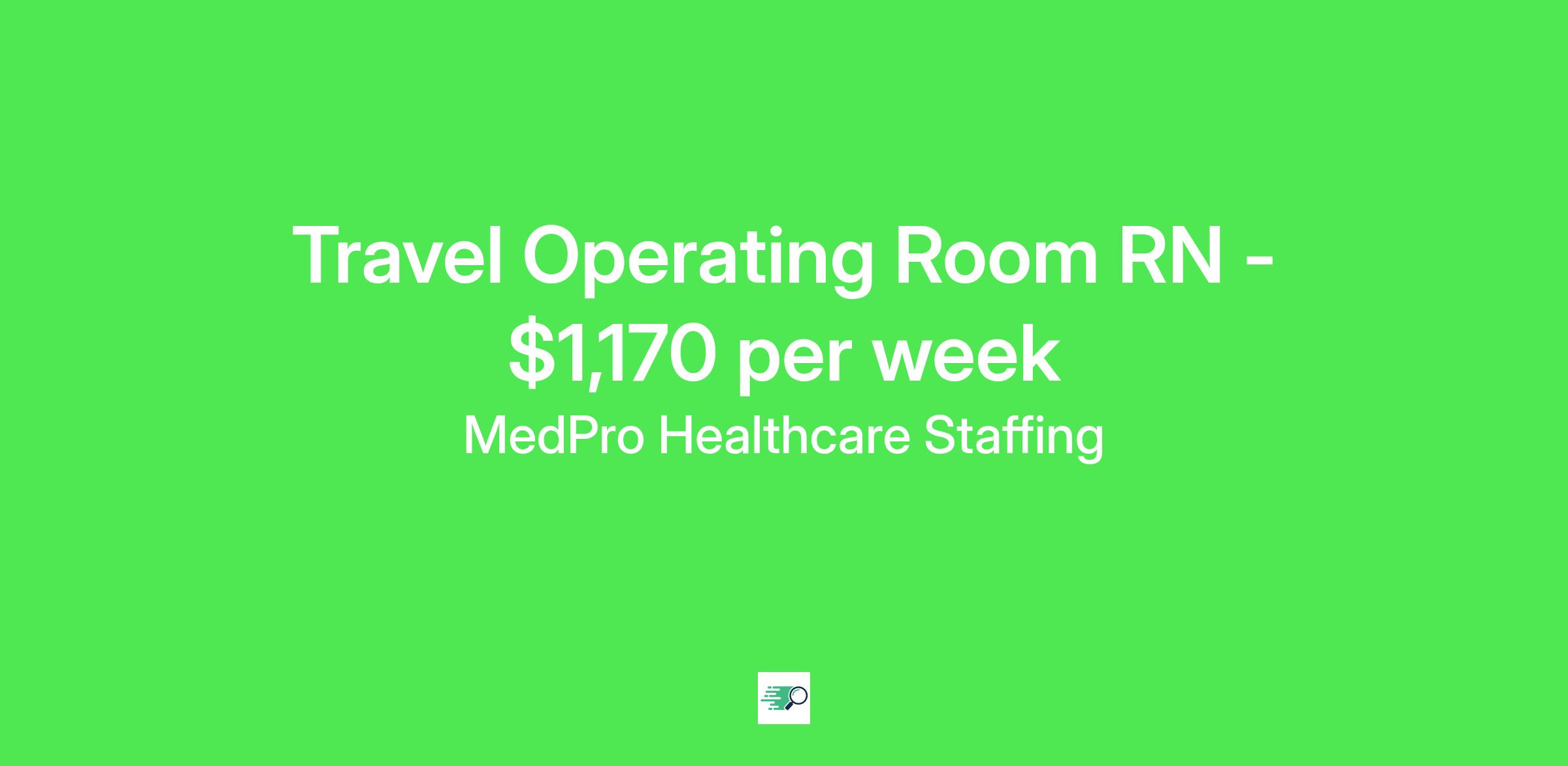 MedPro Job ID . Pay package is based on 8 hour shifts and 40 hours per week (subject to confirmation) with tax-free stipend amount to be determined. Posted job title: Operating Room Registered Nurse Nursing: Operating Room.
