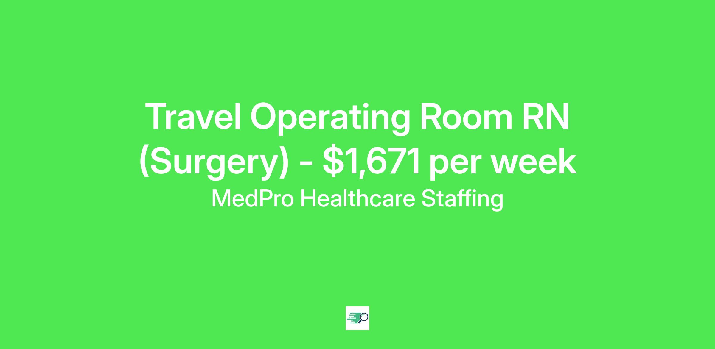 MedPro Job ID . Pay package is based on 10 hour shifts and 40 hours per week (subject to confirmation) with tax-free stipend amount to be determined. Posted job title: Operating Room Registered Nurse Nursing: Operating Room.