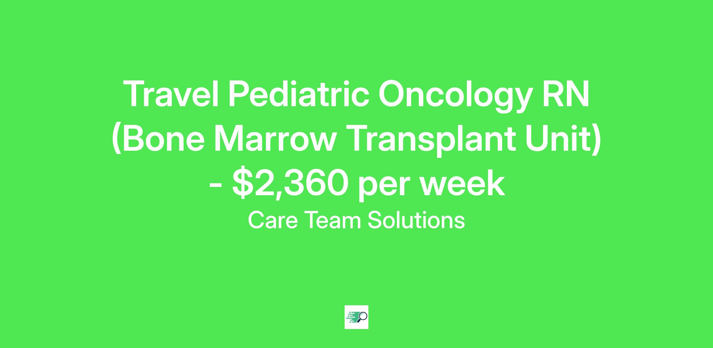 Care Team Solutions Job ID . Pay package is based on 12 hour shifts and 36 hours per week (subject to confirmation) with tax-free stipend amount to be determined. Posted job title: Oncology - Pediatric Registered Nurse