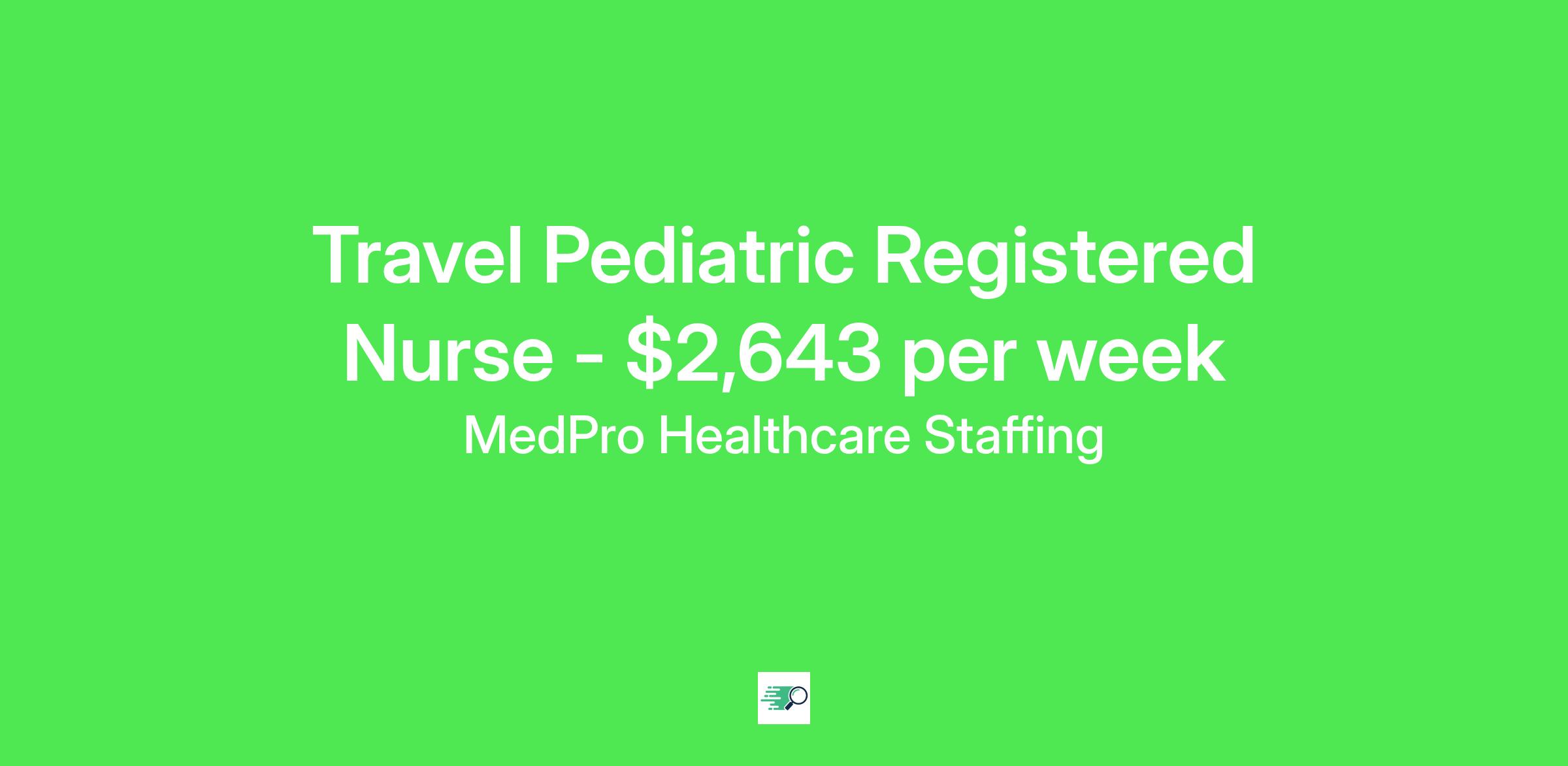 MedPro Job ID . Pay package is based on 12 hour shifts and 36 hours per week (subject to confirmation) with tax-free stipend amount to be determined. Posted job title: Pediatric Registered Nurse Nursing: Peds-Pediatrics.