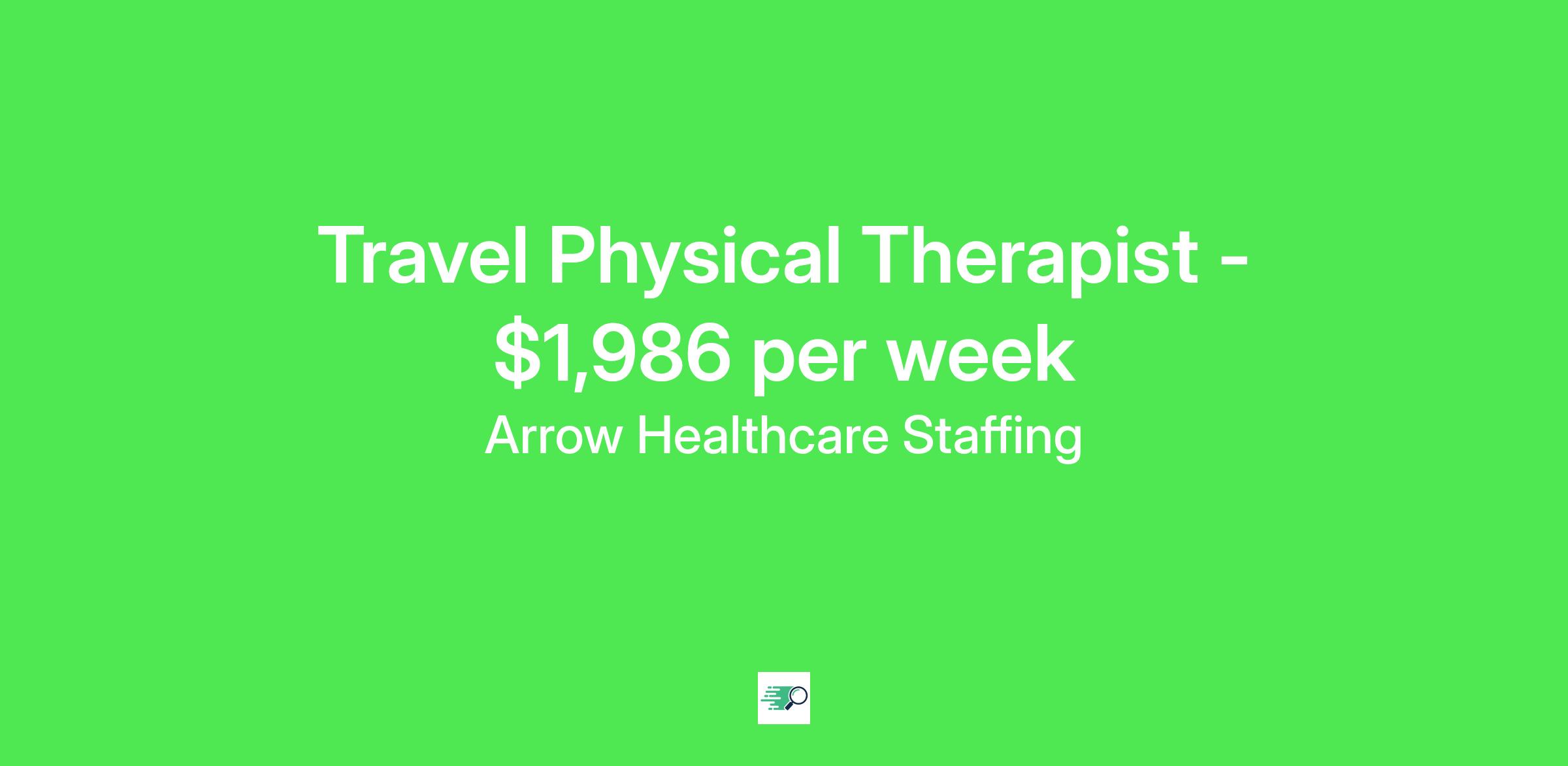 Job Description & RequirementsArrow Healthcare Staffing Job ID . Pay package is based on 10 hour shifts and 40.0 hours per week (subject to confirmation) with tax-free stipend amount to be determined. Posted job title: Physical Therapist Physical Therapy Physical Therapist (PT)