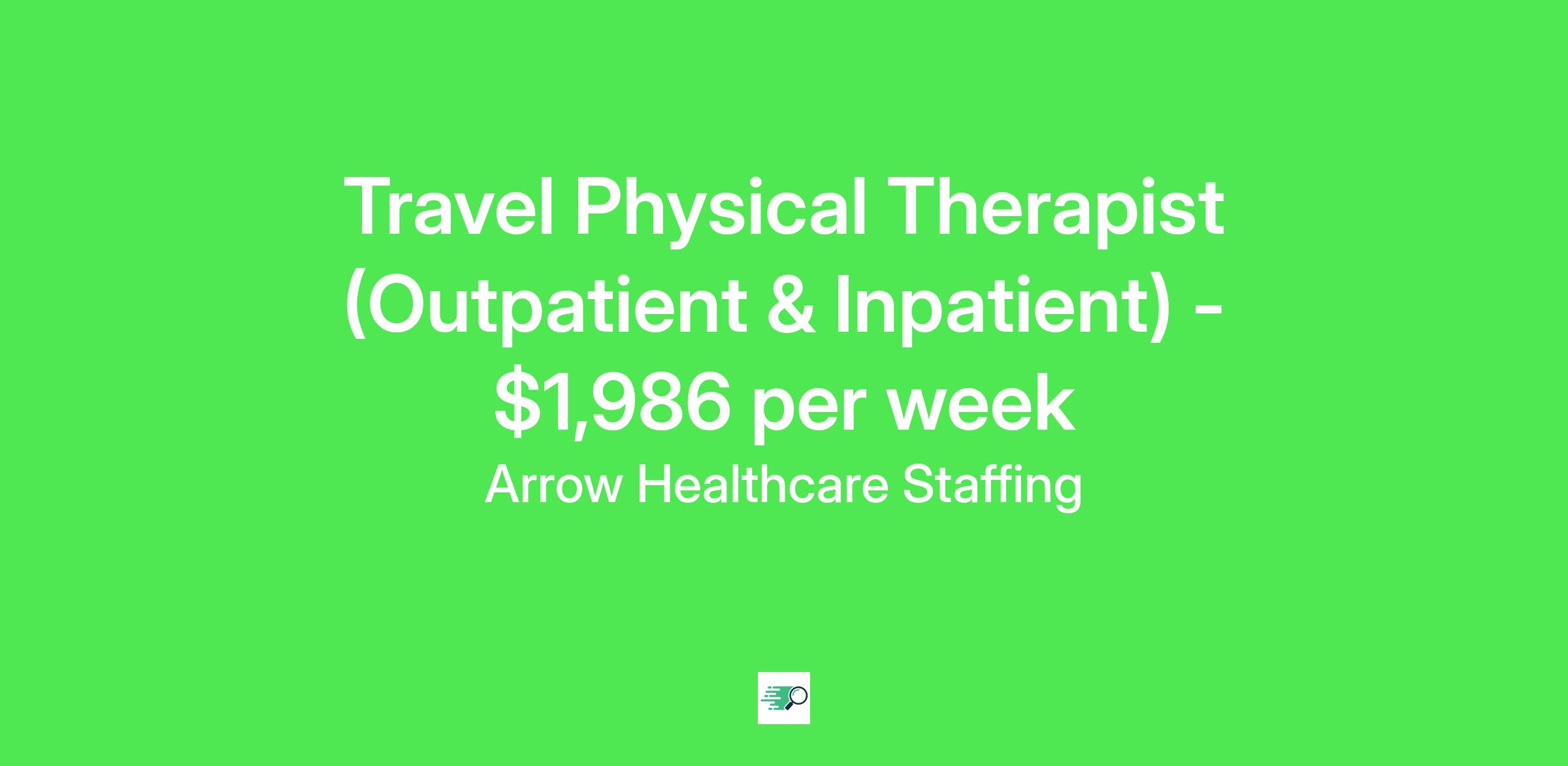 Job Description & RequirementsArrow Healthcare Staffing Job ID . Pay package is based on 10 hour shifts and 40.0 hours per week (subject to confirmation) with tax-free stipend amount to be determined. Posted job title: Physical Therapist Physical Therapy Physical Therapist (PT)
