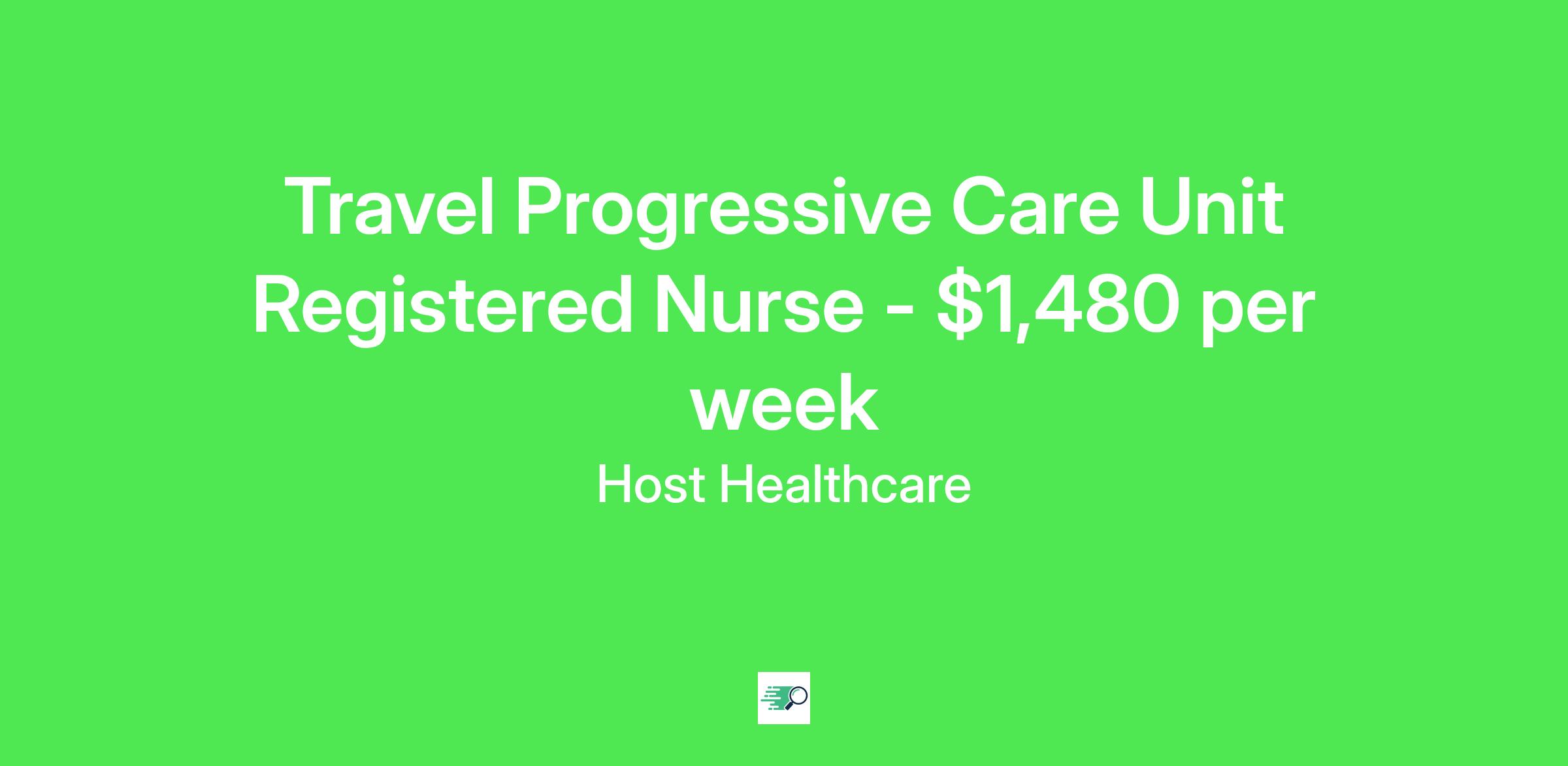 Job Description & RequirementsHost Healthcare Job ID . Pay package is based on 12 hour shifts and 36 hours per week (subject to confirmation) with tax-free stipend amount to be determined. Posted job title: RN - PCU