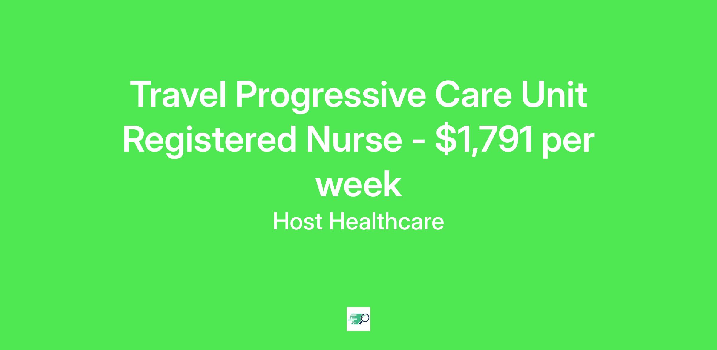 Job Description & RequirementsHost Healthcare Job ID . Pay package is based on 12 hour shifts and 36 hours per week (subject to confirmation) with tax-free stipend amount to be determined. Posted job title: RN - PCU