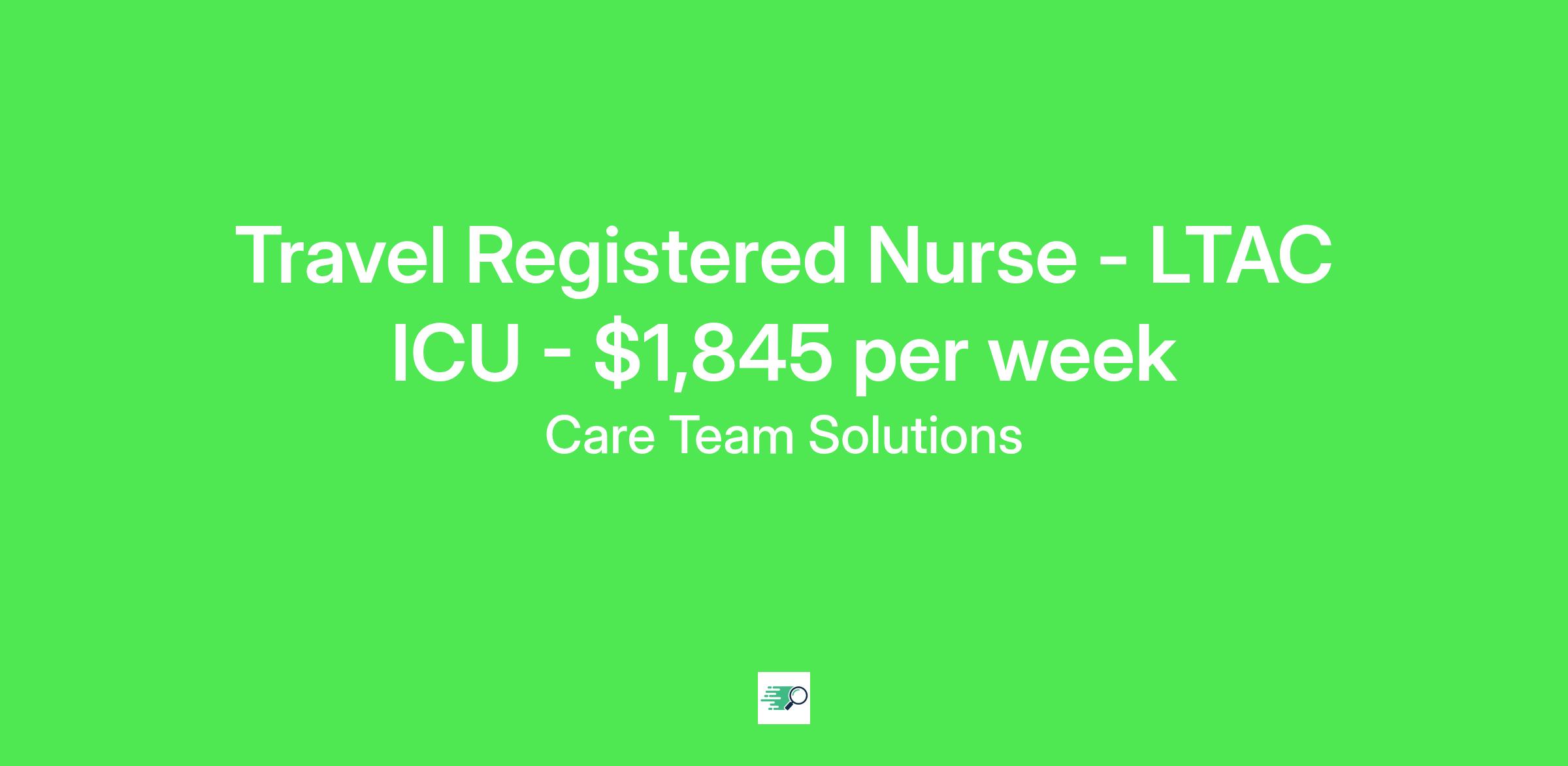 Care Team Solutions Job ID . Pay package is based on 12 hour shifts and 36 hours per week (subject to confirmation) with tax-free stipend amount to be determined. Posted job title: LTAC ICU Registered Nurse