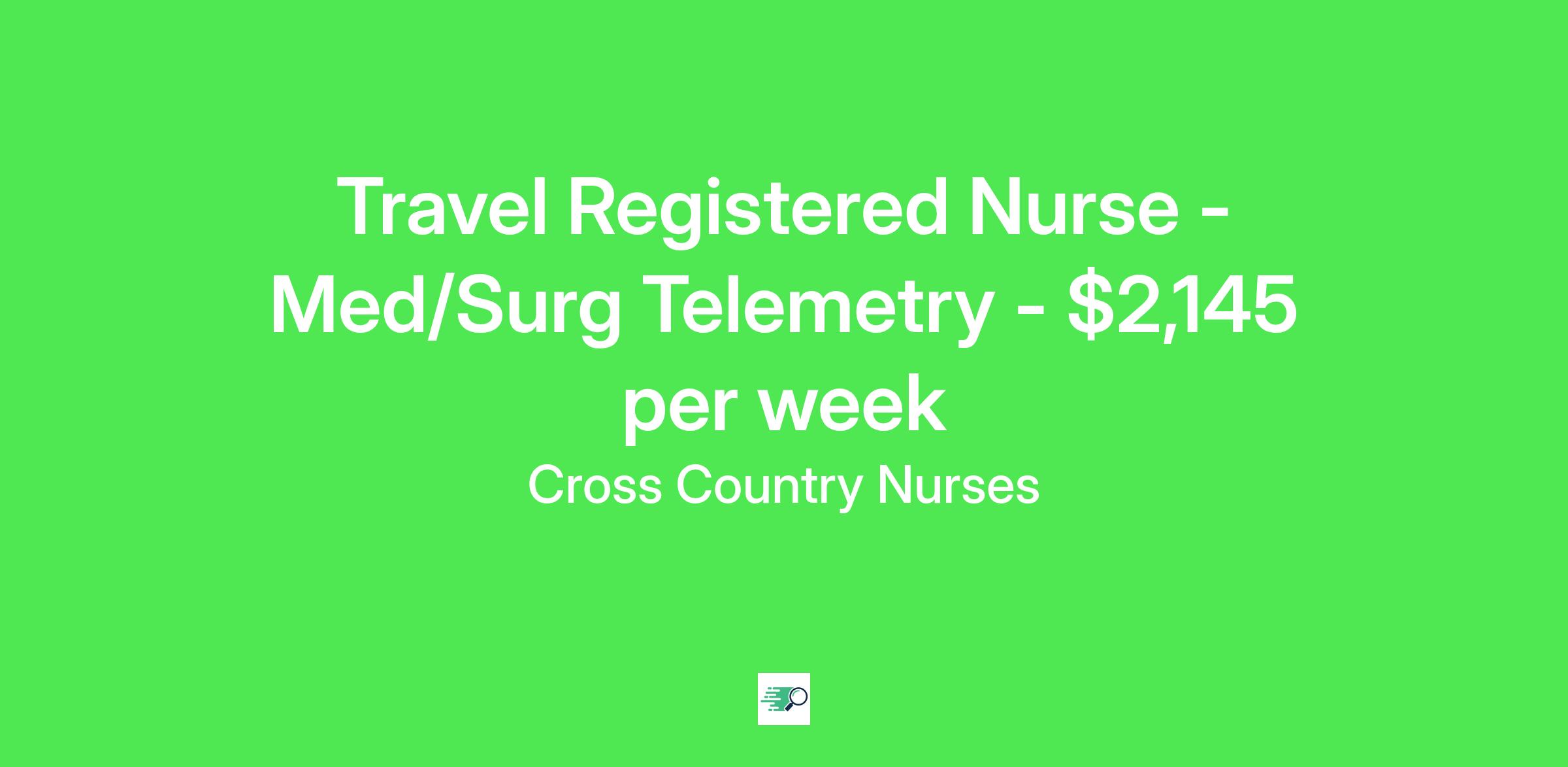 Minimum RequirementsCross Country Job ID . Pay package is based on 12 hour shifts and 36 hours per week (subject to confirmation) with tax-free stipend amount to be determined. Posted job title: Registered Nurse / Medical Surgical With Telemetry