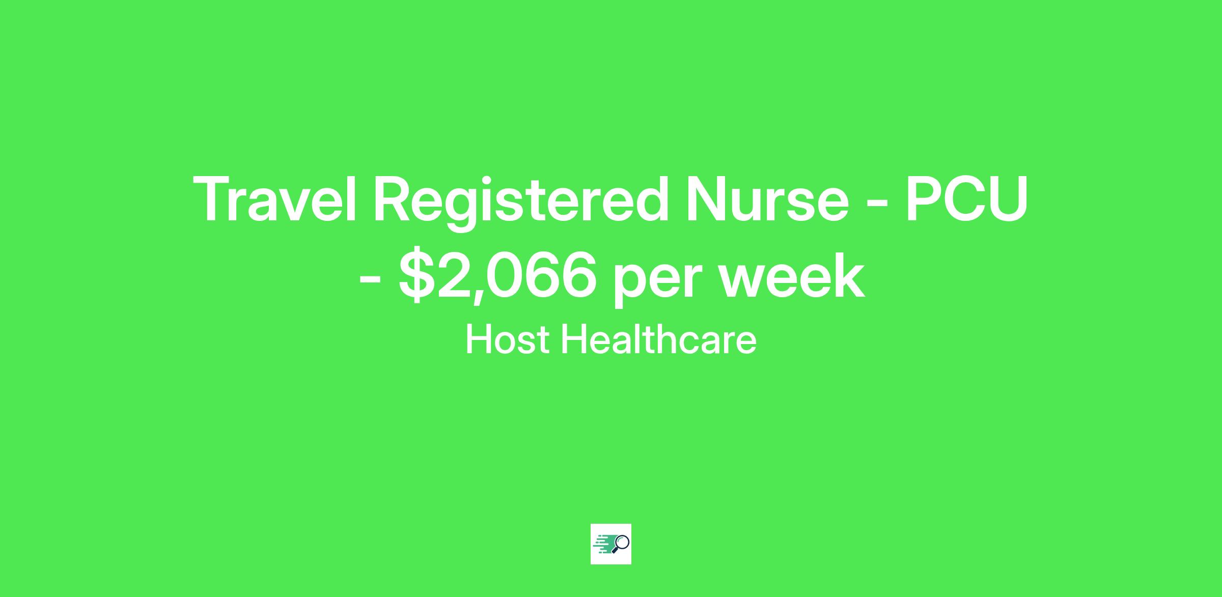 Job Description & RequirementsHost Healthcare Job ID . Pay package is based on 12 hour shifts and 36 hours per week (subject to confirmation) with tax-free stipend amount to be determined. Posted job title: RN - PCU