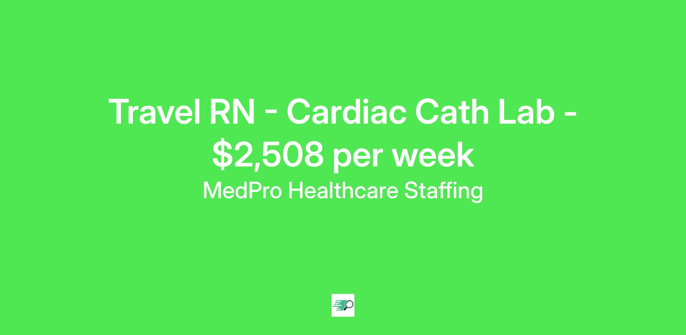 Job Description & RequirementsMedPro Healthcare Staffing , a Joint Commission-certified staffing agency, is seeking a quality Cath Lab Registered Nurse (RN) for a travel assignment with one of our top healthcare clients.