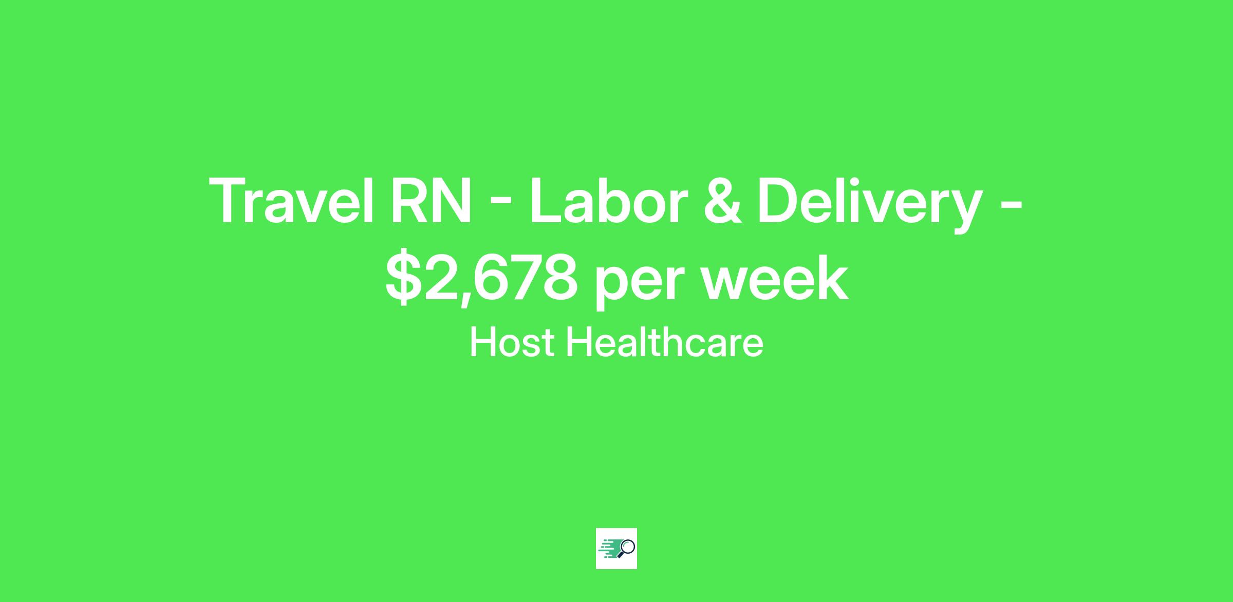 Job Description & RequirementsHost Healthcare Job ID . Pay package is based on 12 hour shifts and 36 hours per week (subject to confirmation) with tax-free stipend amount to be determined. Posted job title: RN - Labor and Delivery
