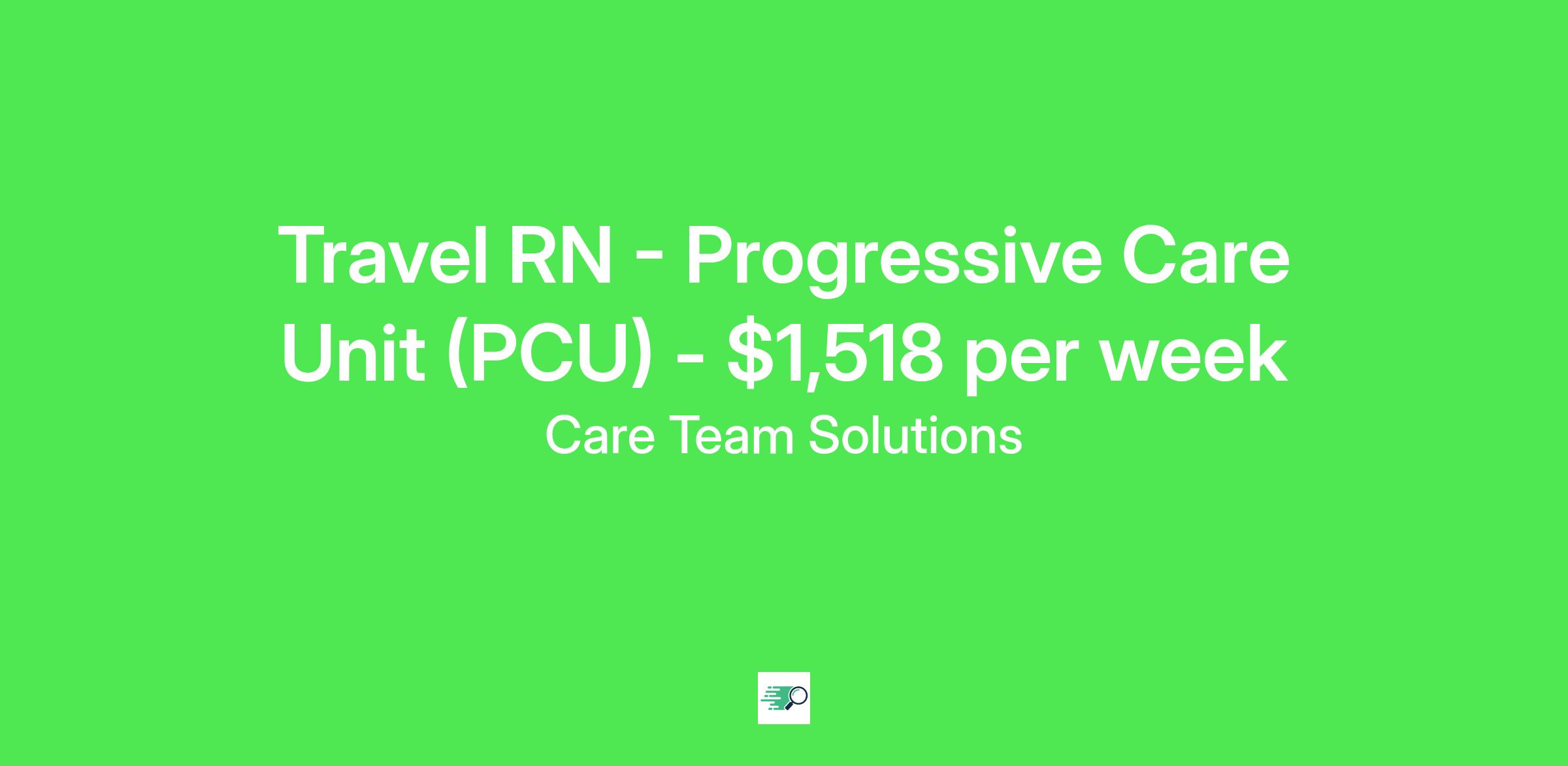Care Team Solutions Job ID . Pay package is based on 12 hour shifts and 36 hours per week (subject to confirmation) with tax-free stipend amount to be determined. Posted job title: PCU Registered Nurse