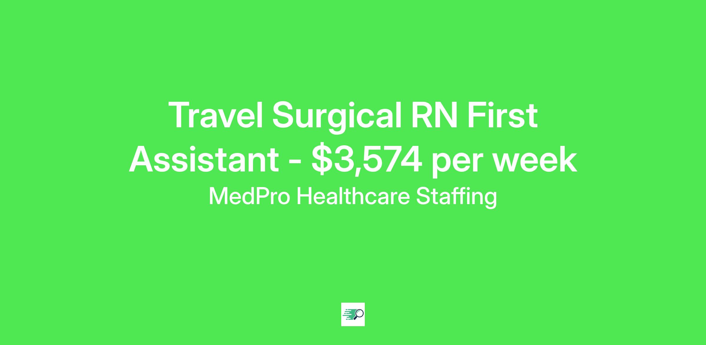 MedPro Job ID . Pay package is based on 8 hour shifts and 40 hours per week (subject to confirmation) with tax-free stipend amount to be determined. Posted job title: First Assistant Registered Nurse Nursing: First Assist.