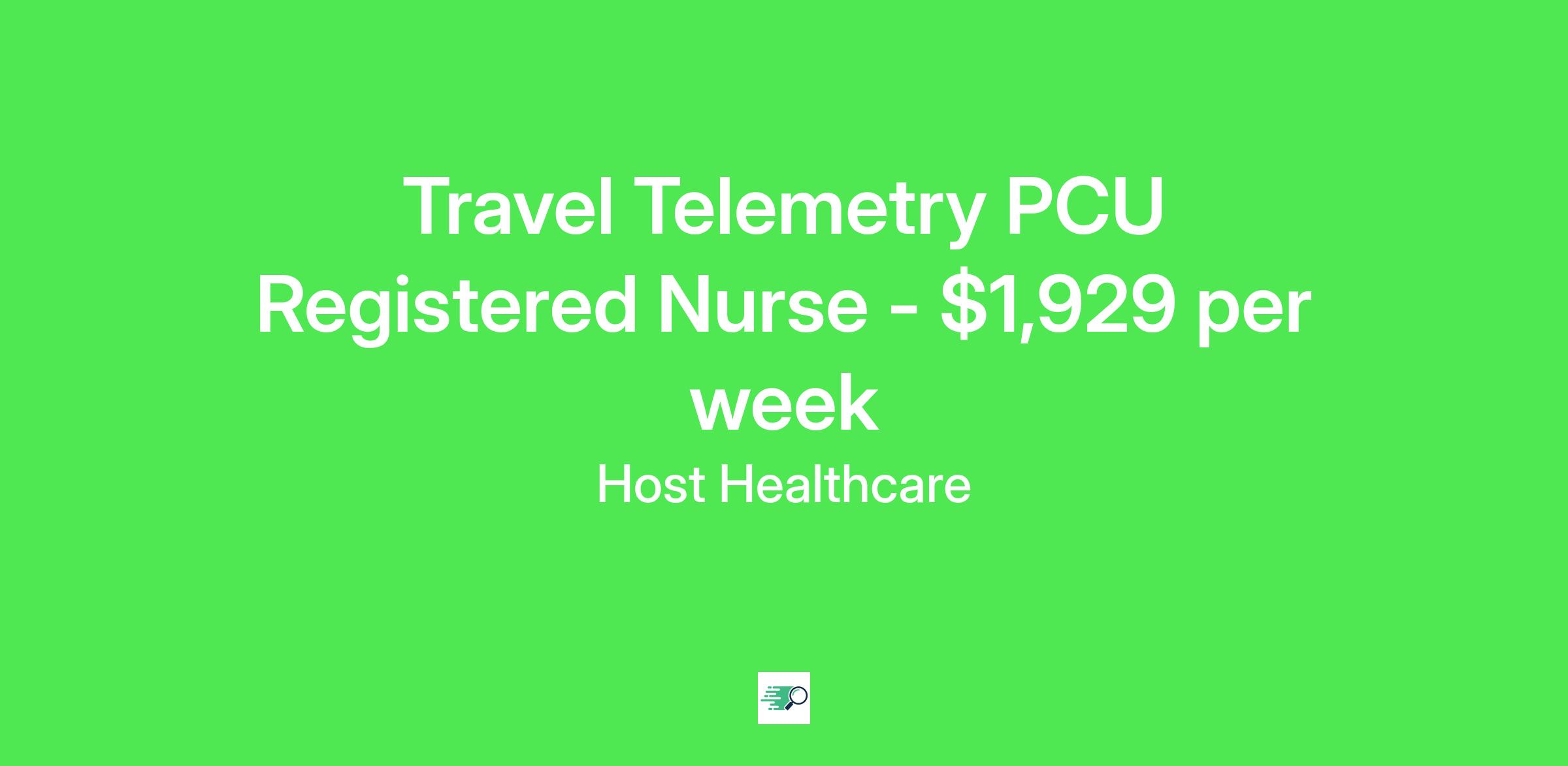 Job Description & RequirementsHost Healthcare Job ID . Pay package is based on 12 hour shifts and 36 hours per week (subject to confirmation) with tax-free stipend amount to be determined. Posted job title: RN - PCU