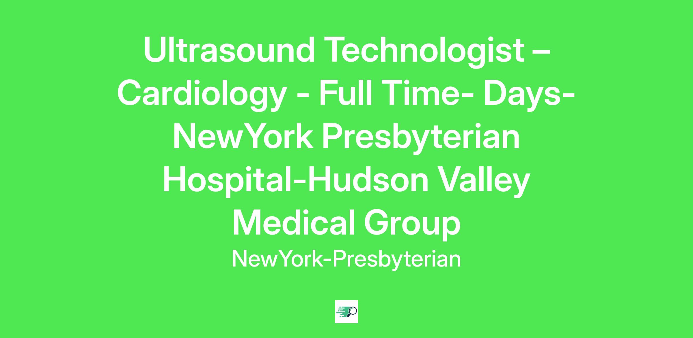 Ultrasound Technologist – Cardiology - Full Time- Days- NewYork Presbyterian Hospital/Hudson Valley Medical Group