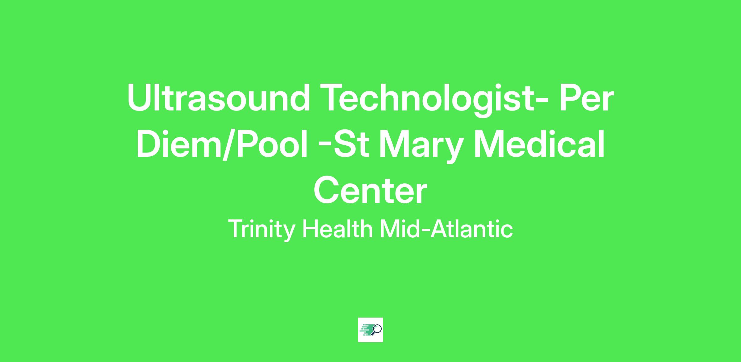 *Employment Type:* Part time *Shift:* Rotating Shift *Description:* St. Mary Medical Center, a member of Trinity Health Mid-Atlantic, is looking for a per diem Ultrasound Technologist to join our team! *Shift: * PRN, Pool/Per Diem per department needs. Weekday, weekend and holiday requirements. * Summary* Provides comprehensive care to patients requiring ultrasonography services in an organized and systematic manner according to departmental policy and standards. * Follows appropriate departmental protocol for procedures unless specified differently by the Radiologist * Obtains and documents patient history and pertinent information Insures proper identification of patient * Produces quality diagnostic images for interpretation. *Requirements: * * Graduate of accredited Ultrasound program * ARDMS registered OR must pass exam within 12 months of date of hire * BLS * Ultrasound experience preferred ​*We offer a competitive salary and comprehensive benefits including:* * Retirement Savings Program * Free Parking * And more! *Our Commitment * Rooted in our Mission and Core Values, we honor the dignity of every person and recognize the unique perspectives, experiences, and talents each colleague brings. By finding common ground and embracing our differences, we grow stronger together and deliver more compassionate, person-centered care. We are an Equal Opportunity Employer. All qualified applicants will receive consideration for employment without regard to race, color, religion, sex, sexual orientation, gender identity, national origin, disability, veteran status, or any other status protected by federal, state, or local law.