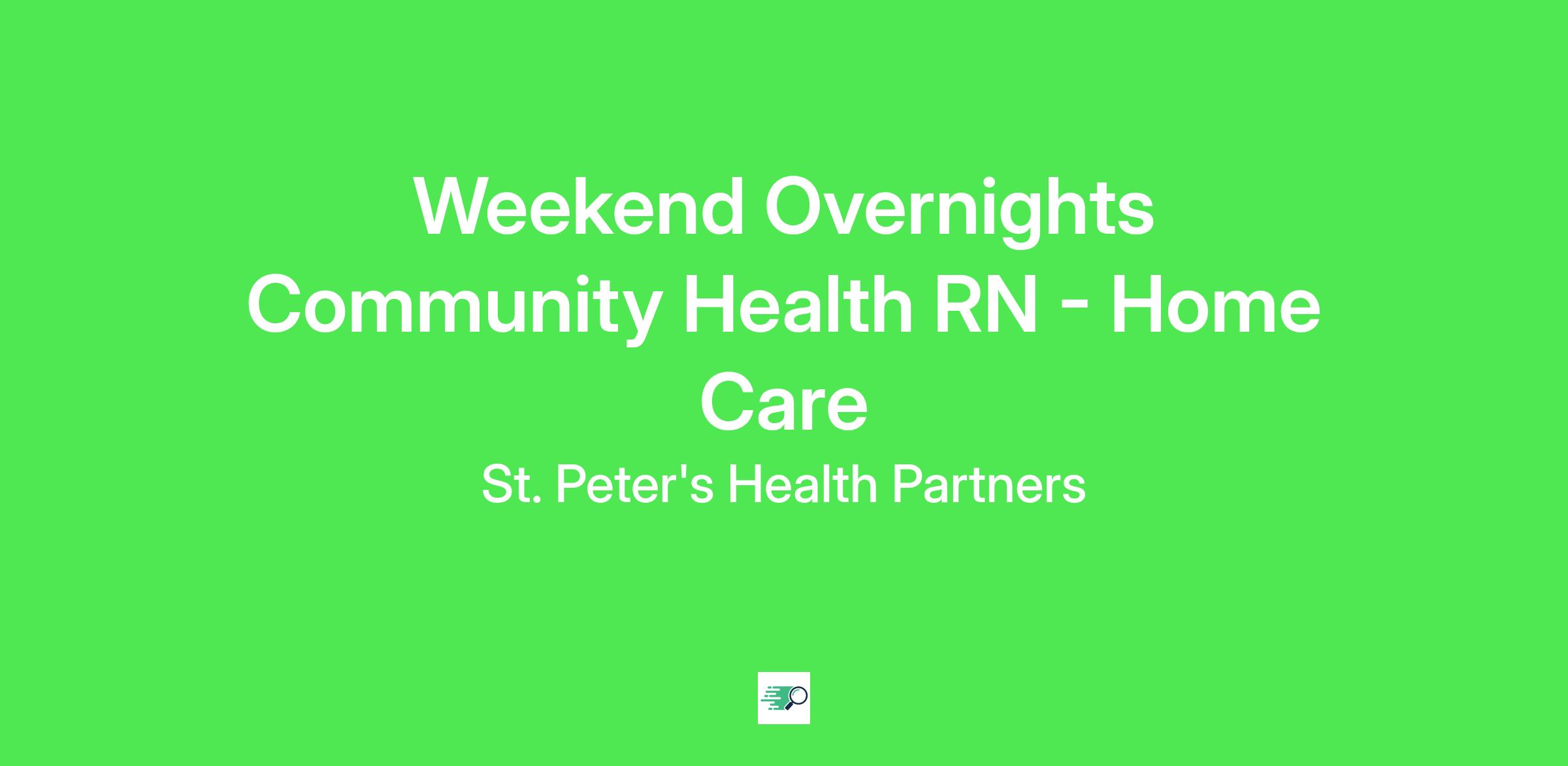 Employment Type:* Full time *Shift:* Night Shift *Description:* *Full-Time Night Shift Hospice On-Call Visit Registered Nurse (RN) Homecare/Nursing Homes in the Capital Region* *Work Schedule: Monday - Friday 12:00a - 8:00a with an every other weekend rotation.* The Community Hospice has a wonderful opportunity for a Full-Time Registered Nurse (RN) to work as part of our Hospice Care Team caring for patients and families in the homecare and nursing home setting after hours on call. Peter's Health Partner's, we care for more people in more places. *Position Highlights:* * National pre-taxed mileage reimbursement * Meetings and charting conducted via supplied lap top * Comprehensive orientation provided * Full benefits through St Peters Health partners * *Prioritizing Your Safety:* Ensuring your safety is our top priority. From comprehensive training to providing necessary protective equipment, we're committed to creating a secure environment for you as you deliver exceptional care in our clients' homes. *What you will need:* * A current license to practice as a Registered Nurse in the State of New York * Associates Degree in Nursing, BSN preferred * 2 years recent experience as an RN required. Homecare RN experience is strongly preferred * Previous hospice experience preferred but NOT required. * Valid Driver's License with clean driving record and reliable vehicle Community Hospice provides a thorough orientation, strong preceptors, and a supportive work environment. Training provided in end-of-life care. Exempt positions under the Fair Labor Standards Act (FLSA) will be paid within the base salary equivalent of the stated hourly rates. By finding common ground and embracing our differences, we grow stronger together and deliver more compassionate, person-centered care. All qualified applicants will receive consideration for employment without regard to race, color, religion, sex, sexual orientation, gender identity, national origin, disability, veteran status, or any other status protected by federal, state, or local law.